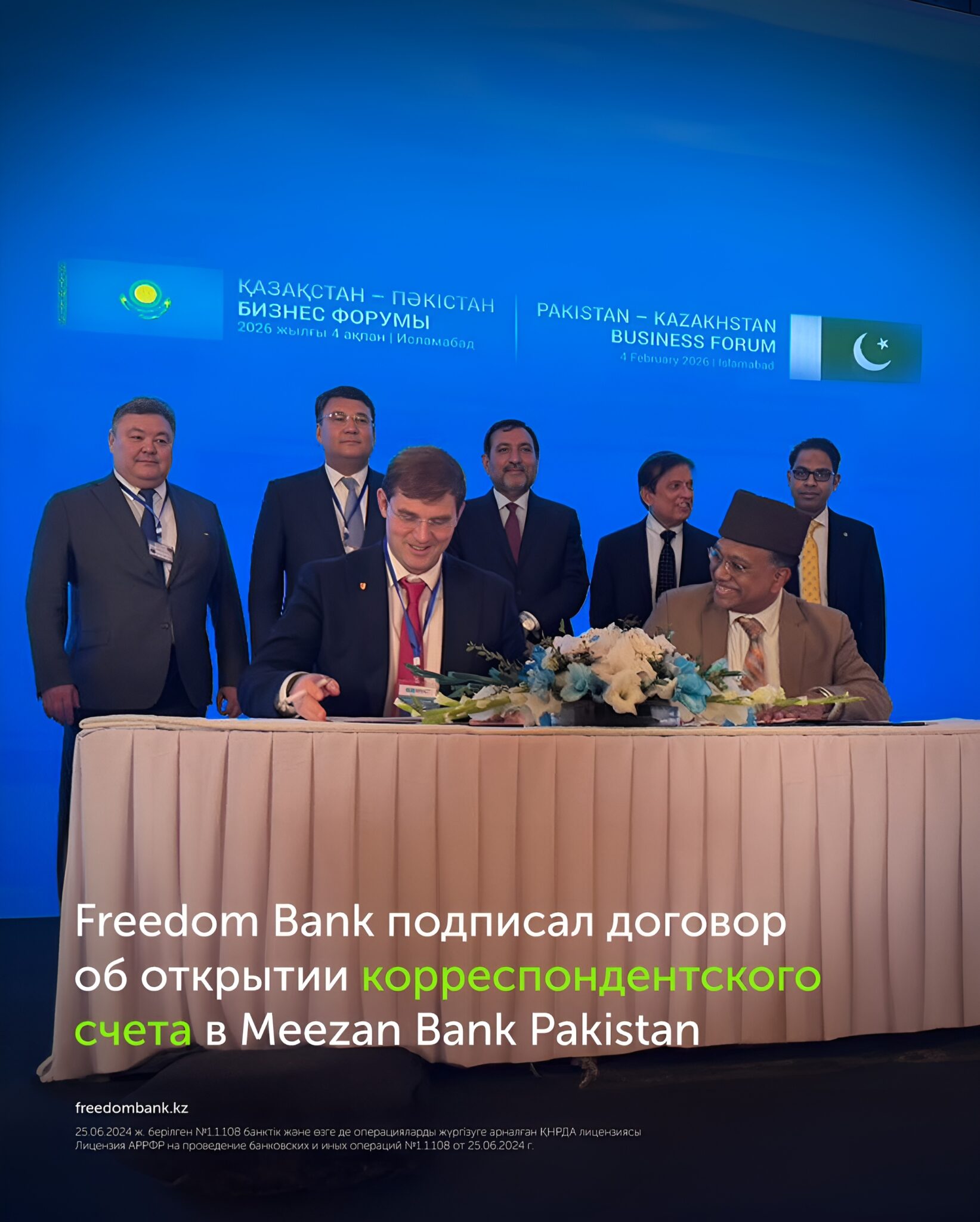 Казахстанский Freedom Bank и пакистанский Meezan Bank Pakistan подписали договор об открытии корреспондентского PKR Vostro счета. Документ был подписан 4…