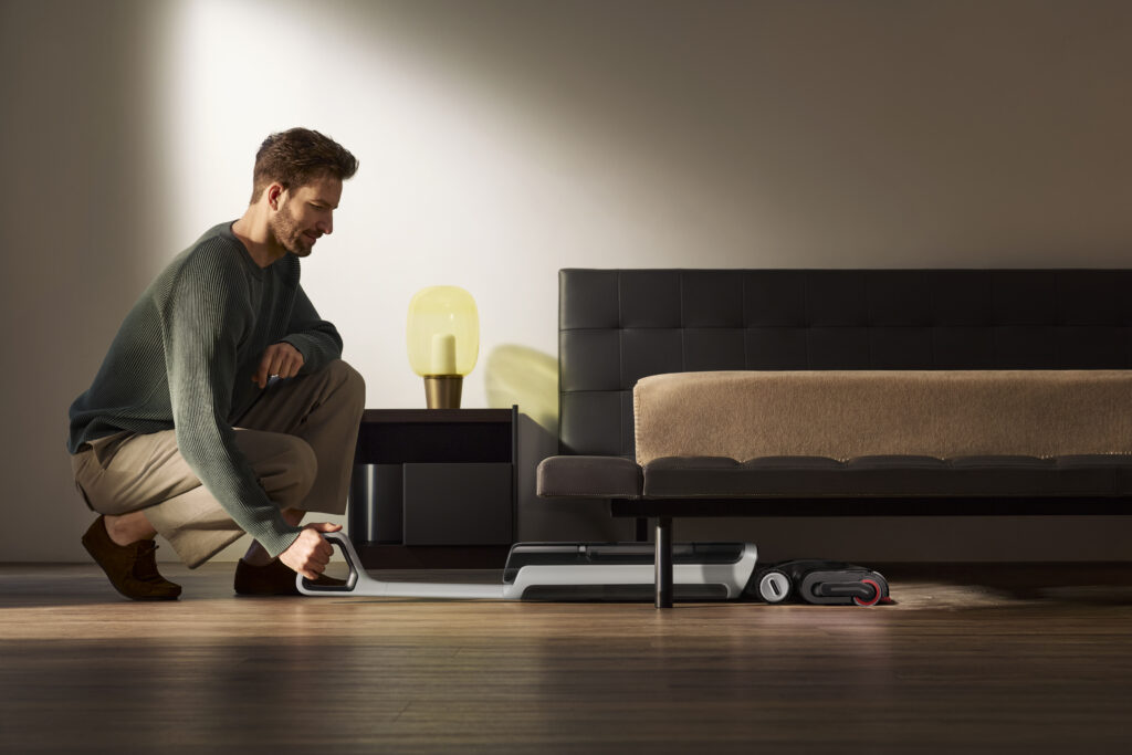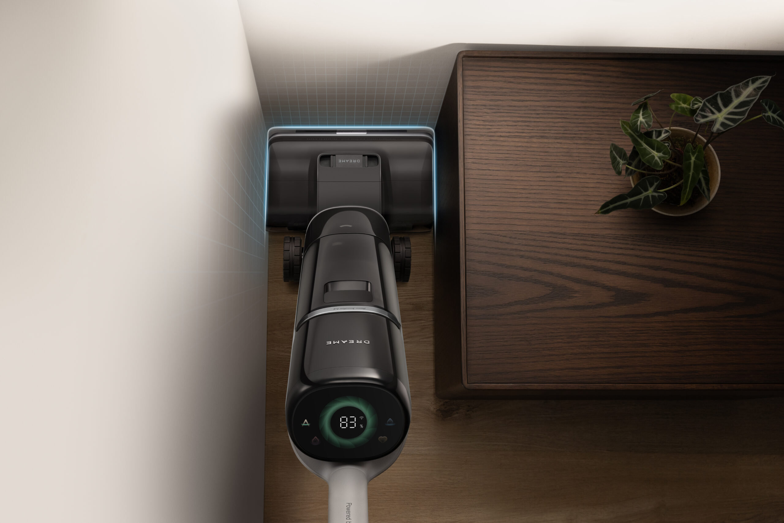 Отдельного внимания заслуживает система AI DescendReach™ — роботизированная «шторка», которая при движении вперед поднимается, а при остановке или движении назад опускается всего за 0,2 секунды. Благодаря этому пылесос тщательно убирает вдоль плинтусов и в углах, «подтягивая» остатки влаги и оставляя пол идеально сухим.