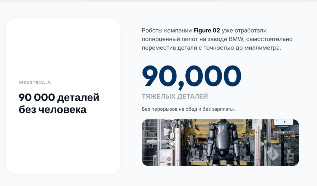 Промышленная революция 2.0: роботы компании Figure 02 уже отработали пилотный проект на заводе BMW, самостоятельно переместив 90 000 тяжелых деталей с точностью до миллиметра. Без обедов, выходных и зарплаты.