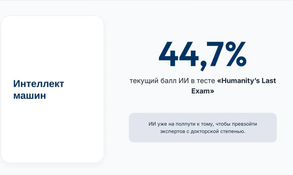 Интеллект машин: в тесте Humanity’s Last Exam ИИ набрал 44.7%. Он уже на полпути к тому, чтобы превзойти экспертов с докторской степенью. Он уже сдает самый сложный экзамен в МИРЕ!