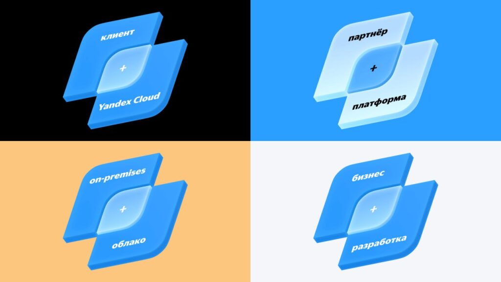 В основу новой айдентики легло представление о Yandex Cloud как о конструкторе. Его детали — это отдельные сервисы и инструменты. Они соединяются друг с другом, образуя простые или сложные структуры, из которых, в свою очередь, формируется общий технологический ландшафт.