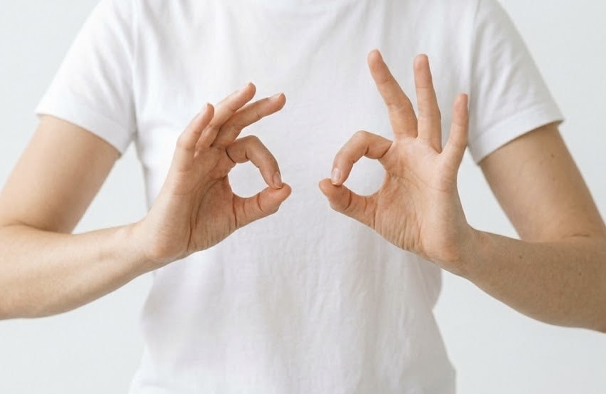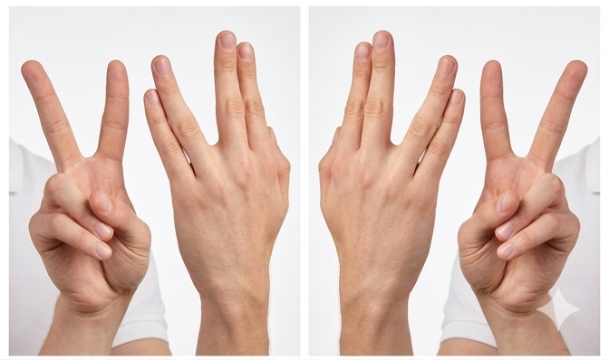 Для выполнения этого упражнения на одной руке соединяем большой палец с указательным, а на другой — большой палец с мизинцем. Затем одновременно меняем положение пальцев: переходим к следующей комбинации и возвращаемся обратно. Сначала движения могут получаться медленно, но со временем вы начнете выполнять их быстрее и увереннее.