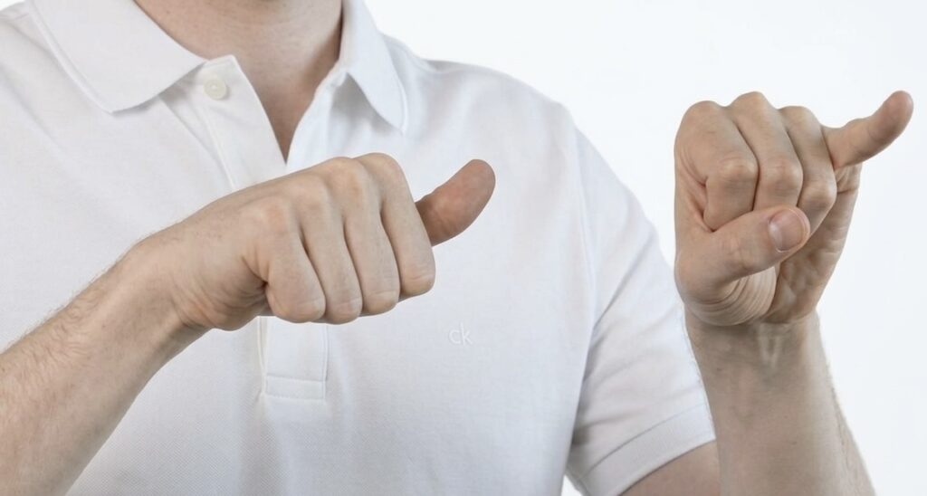 Скрещиваем пальцы рук в разных комбинациях: на одной руке показываем большой палец, на другой — мизинец, затем одновременно меняем положение рук — там, где был большой палец, показываем мизинец, а где был мизинец — большой палец. Выполняем движения в ритме: сначала медленно, затем постепенно ускоряясь.